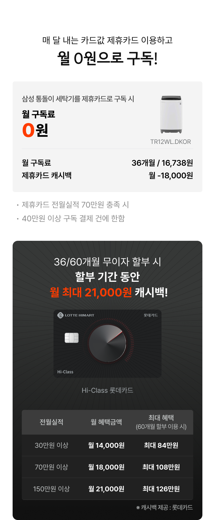 - 캐시백 지급일 : 전월실적 달성 시 다음달 말 롯데카드에서 캐시백 제공