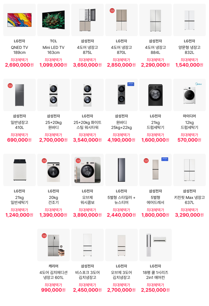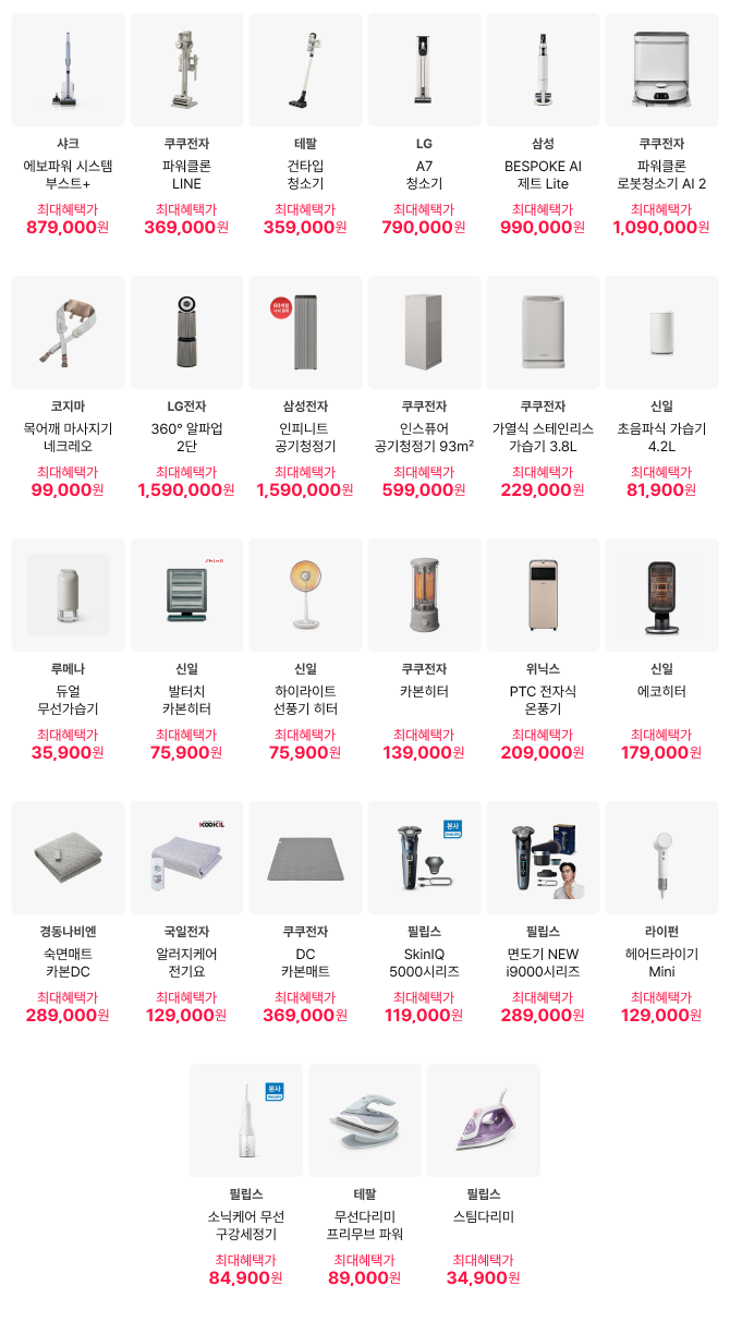 - 구매 조건에 따라 혜택 적용 여부 및 할인 금액이 달라질 수 있으니, 최종 결제 전 혜택 금액을 반드시 확인하시기 바랍니다.