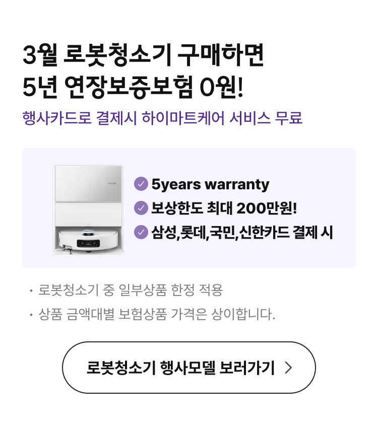 [연장보증보험 0원!][혜택가 155만원대]코드제로 로보킹 AI 올인원 프리스탠딩 B95AWBH1,650,000 원 -