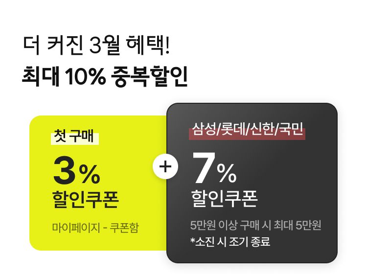- 구매 조건에 따라 혜택 적용 여부 및 할인 금액이 달라질 수 있으니, 최종 결제 전 혜택 금액을 반드시 확인하시기 바랍니다.
