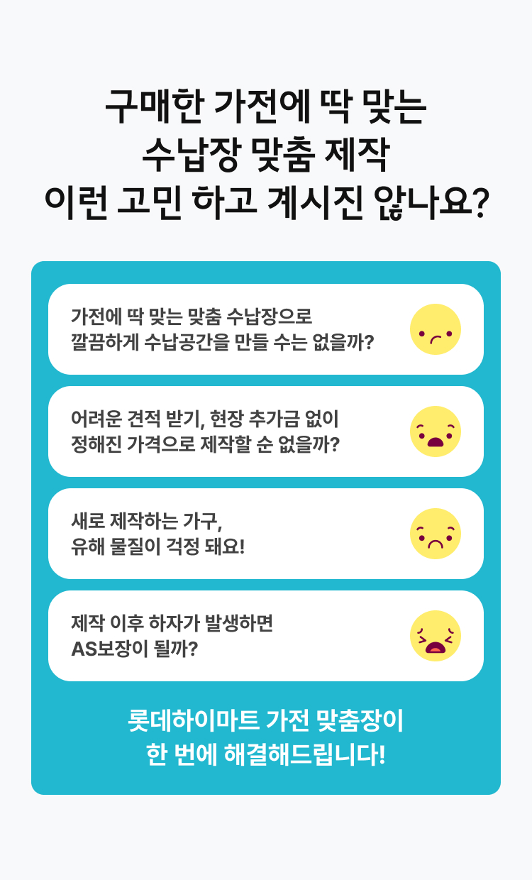 - 수납장은 고객의 요청에 따라 개별 맞춤 제작되며, 제작 착수 이후에는 제품 및 구성 변경은 불가합니다.