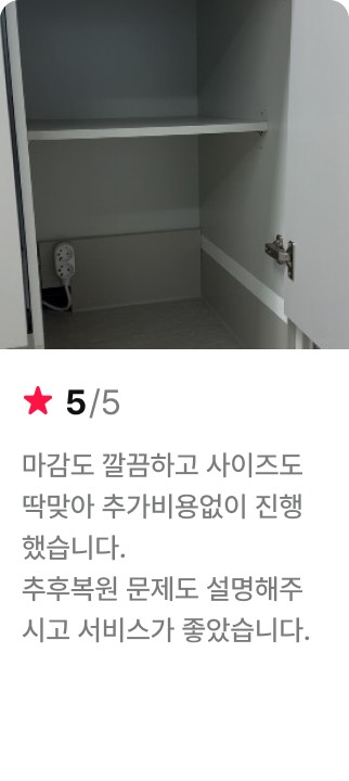 - 시공일 이전 설치 공간 비움 및 작업 공간, 이동 공간이 확보되어야 정상 시공 가능합니다.