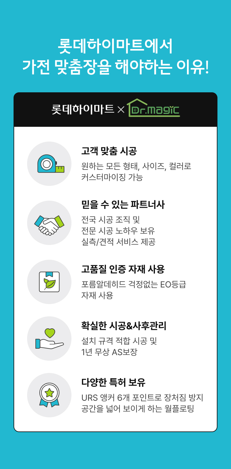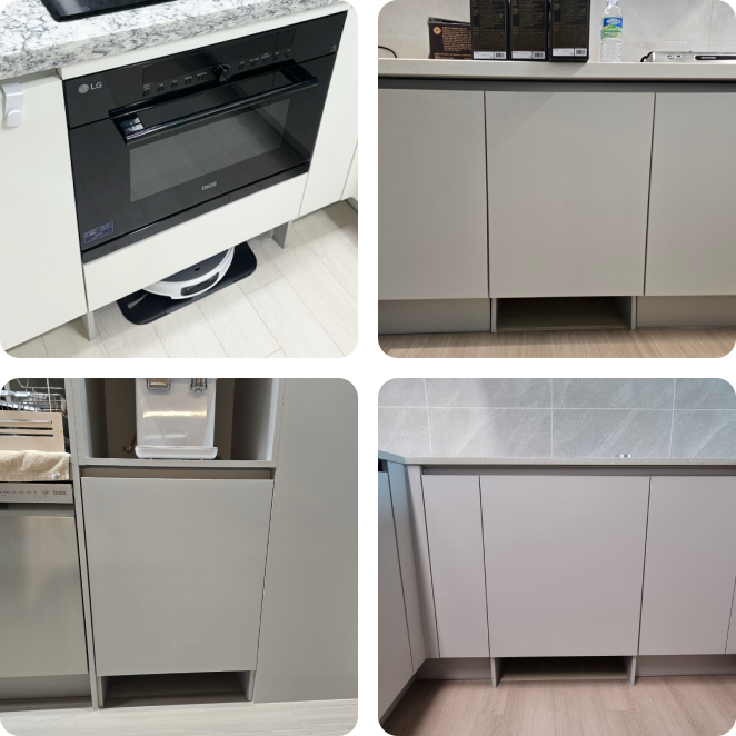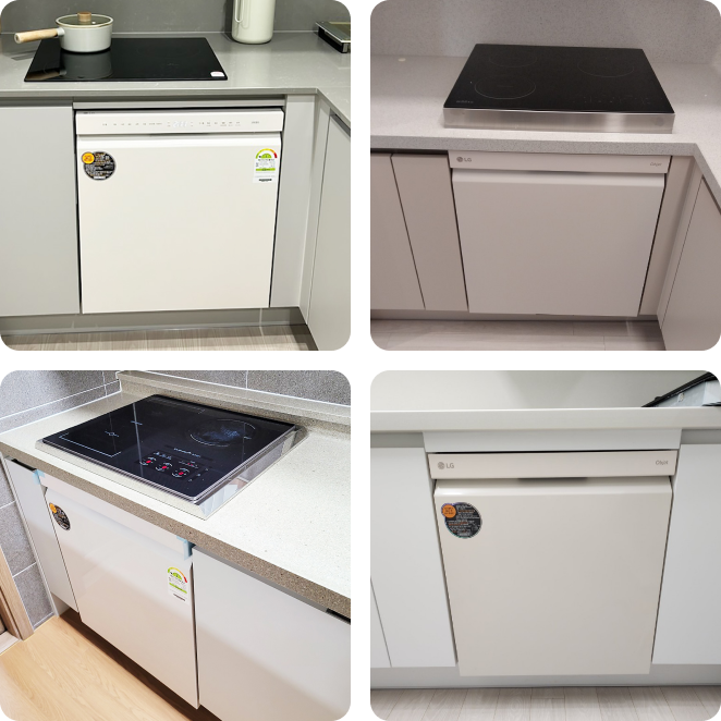 - 식기세척기장은 설치 공간이 가로 60cm, 세로 81.5cm 이하일 경우 비규격장으로 시공해야 하며, 추가금액이 부과될 수 있습니다.