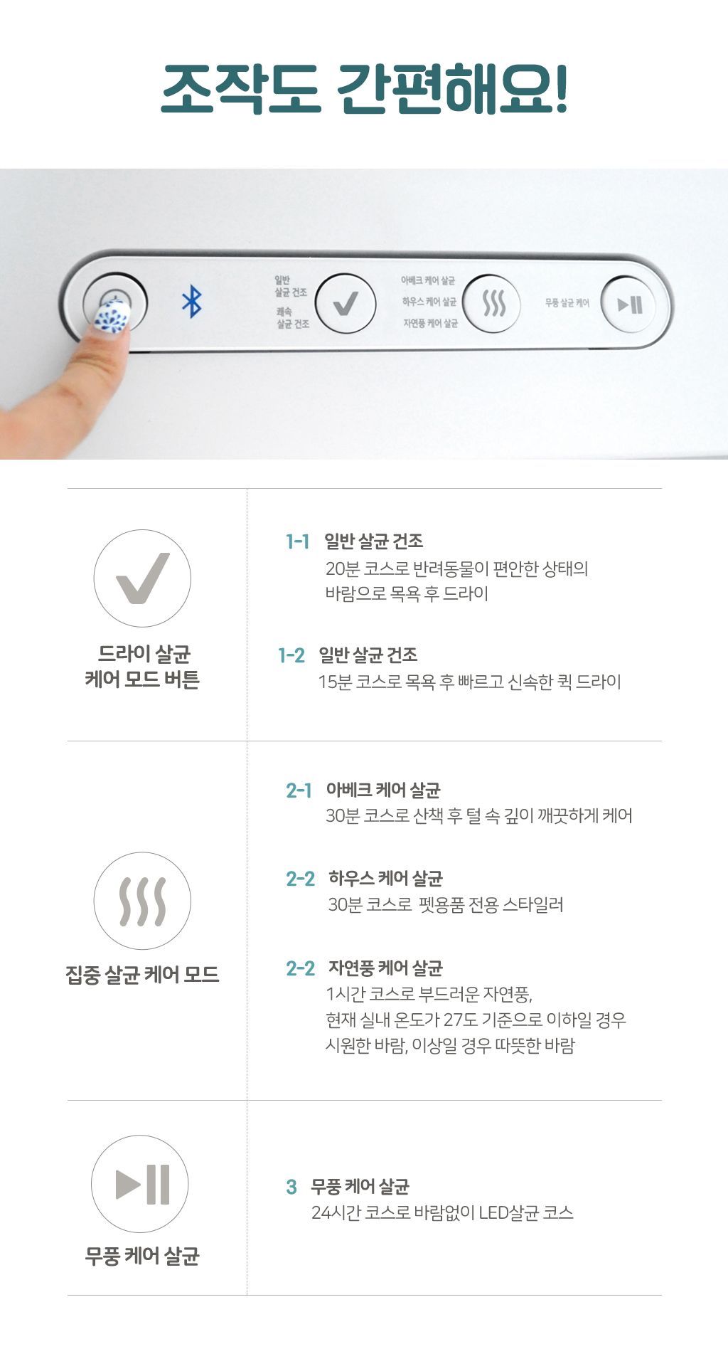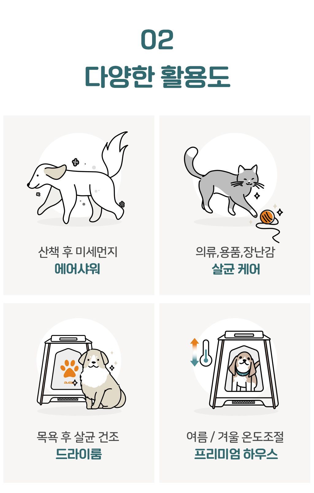 A. 네, 가능합니다. 목욕을 싫어하는 고양이라면 살균케어룸의 에어샤워를 통해 더 쉽게 건강과 청결을 유지시켜줄 수 있습니다.