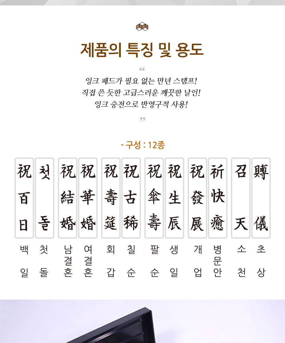 * 직인규격 : 25x5mm* 스탬프 패드 없이 자동으로 인자가 가능하므로 일부인을 많이 사용하는 기관이나 사무실에 편리* 패드교환 가능