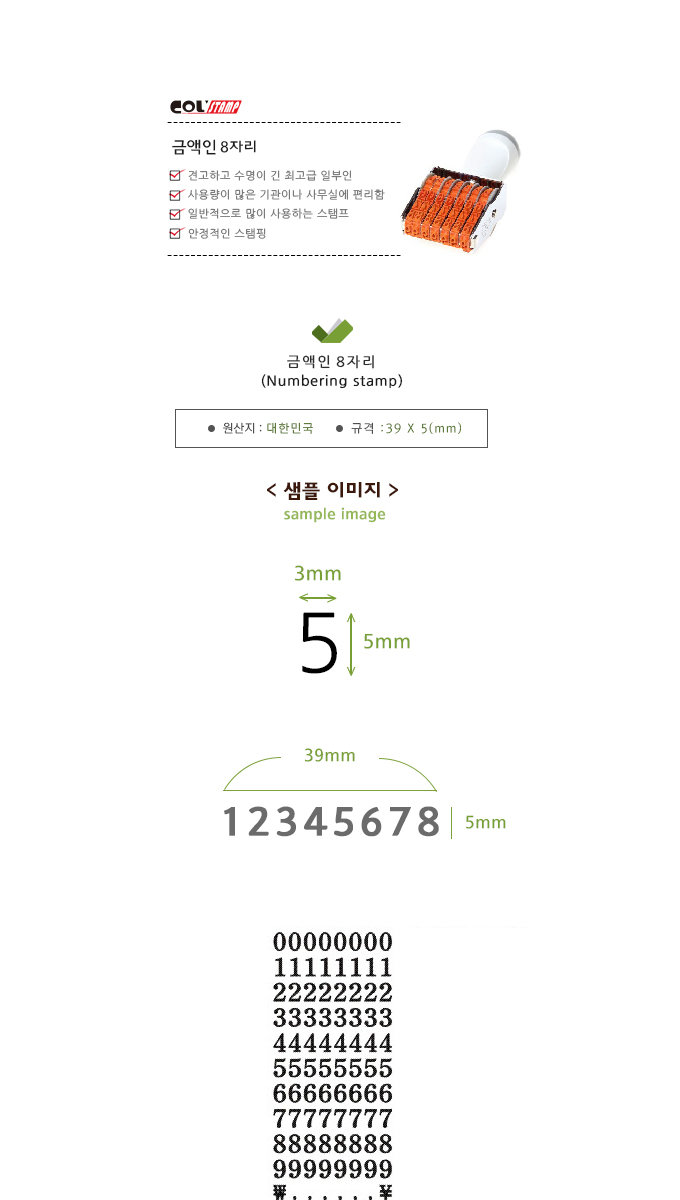 ■ 품명 및 모델명: 금액인(8자리)