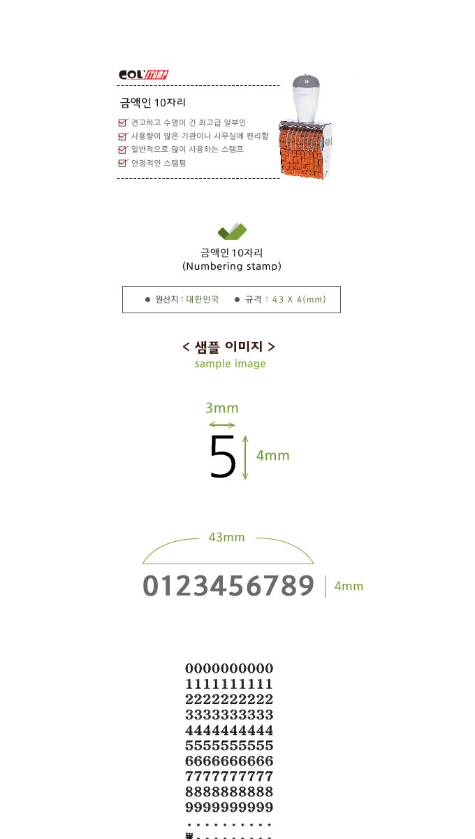 ■ 품명 및 모델명: 금액인(10자리)