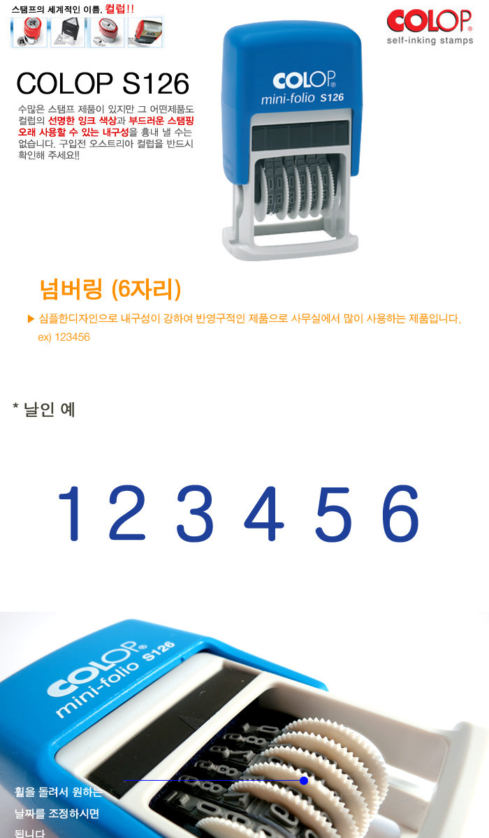 * 스탬프 패드 없이 자동으로 인자가 가능하므로, 일부인을 많이 사용하는 기관이나, 사무실에 편리