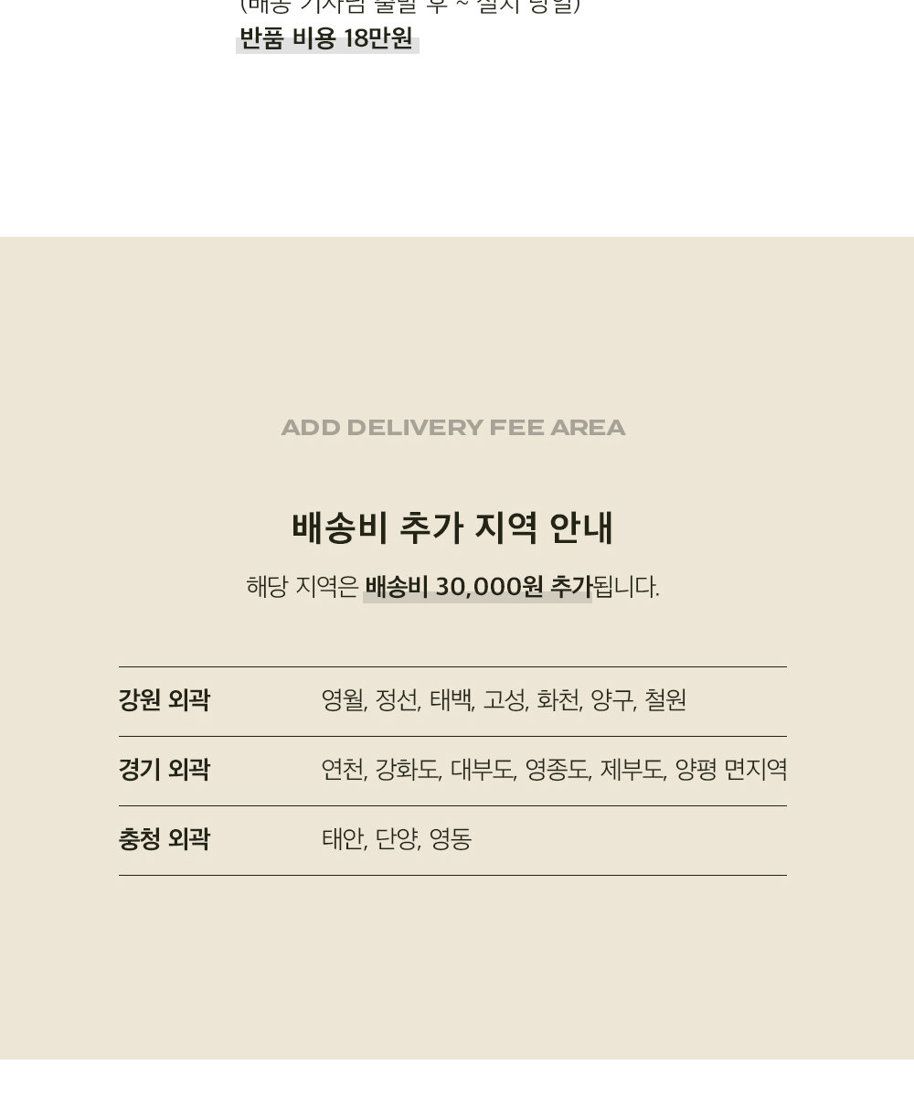 SS,Q:서울,경기 6만원/지방 8만원 / K,LK:서울,경기 7만원/지방 9만원 / 도서산간 및 제주 SS,Q:16만원/K,LK:18만원