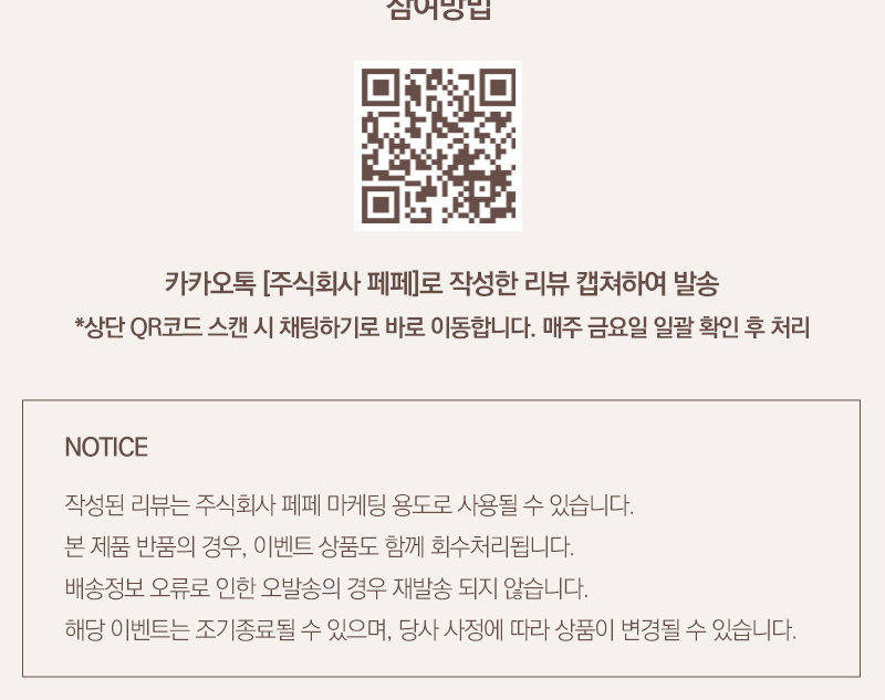 페페에서 진행하는 다양한 프로모션 정보를 아래 채널에서 확인하실 수 있습니다.