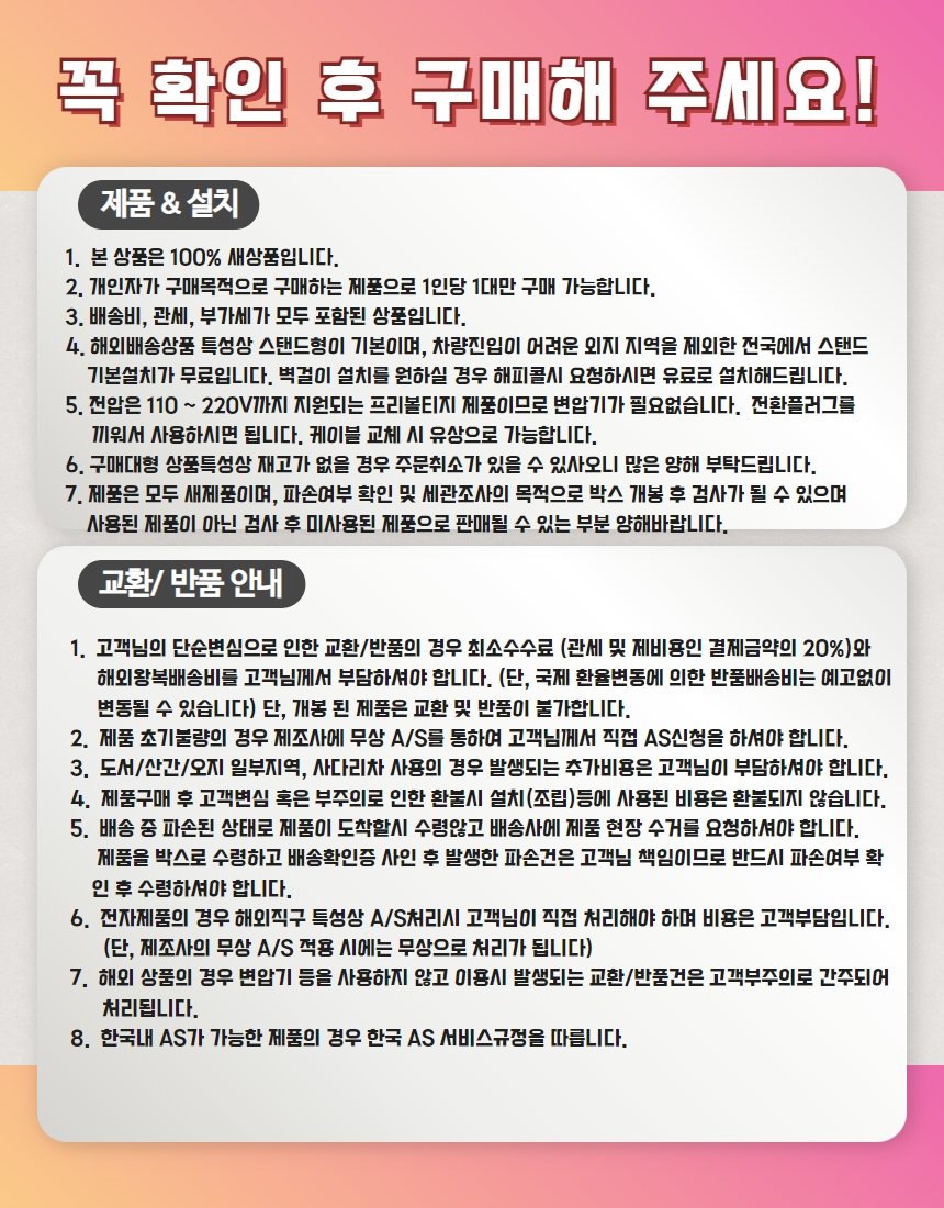 | 제품 치수 | 48.3 x 9.7 x 29.3인치 |