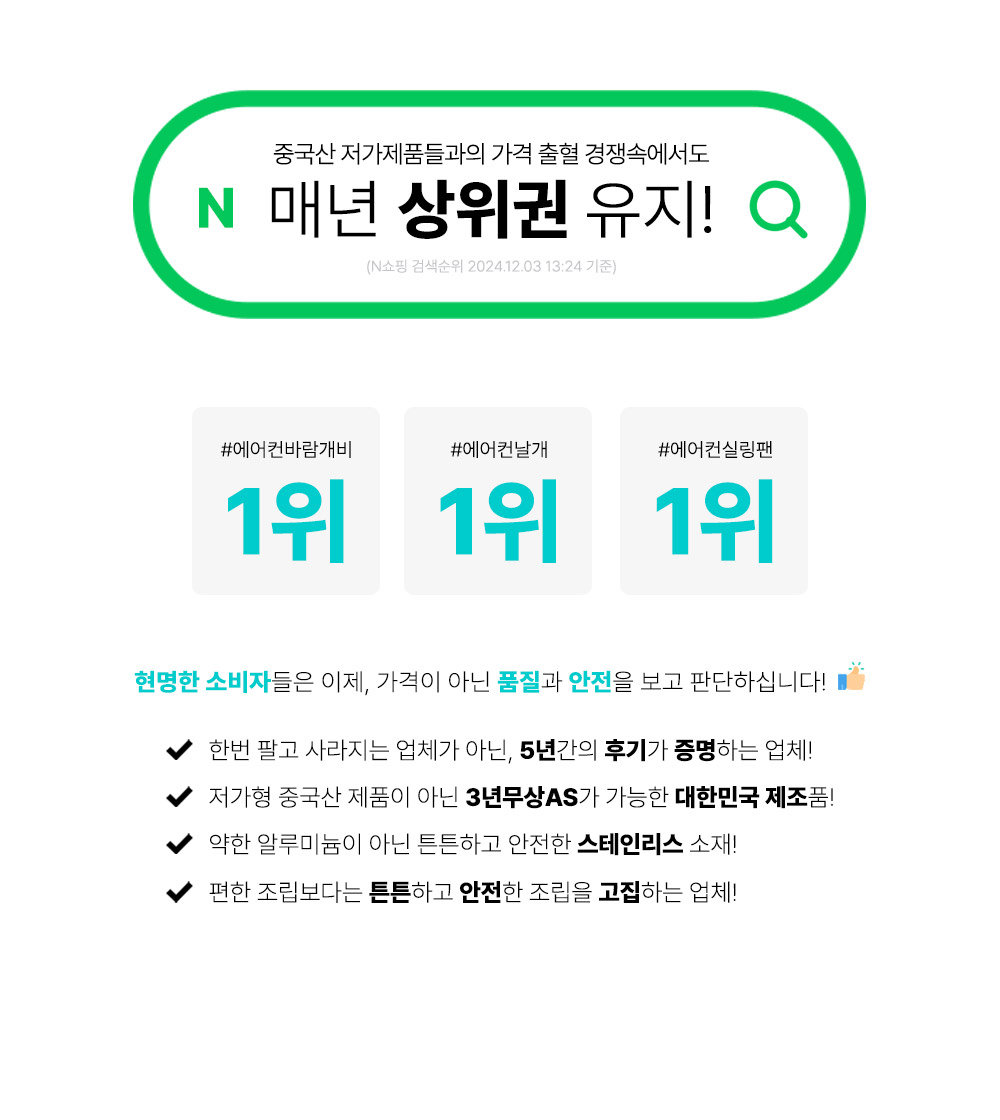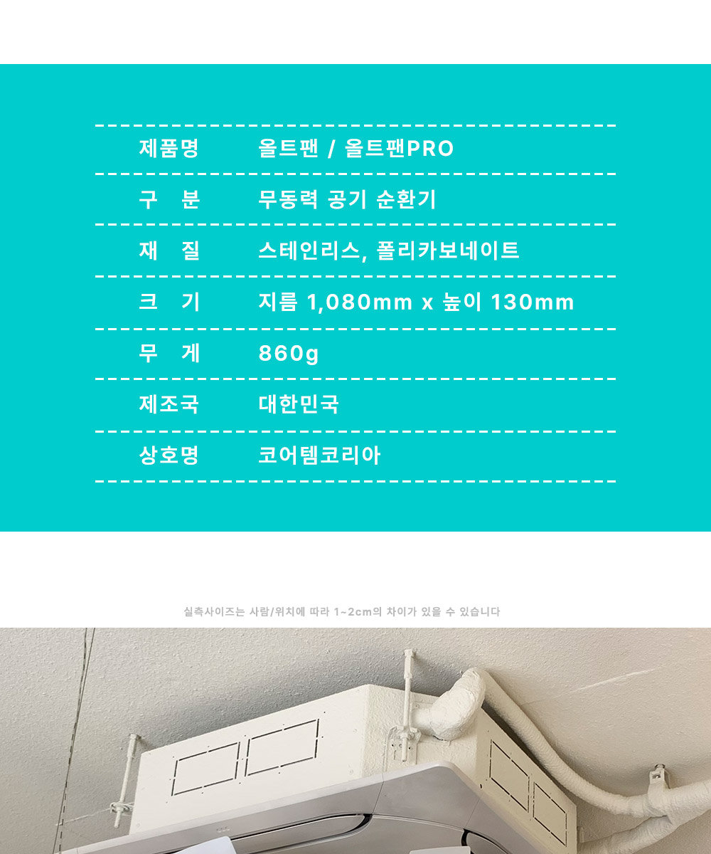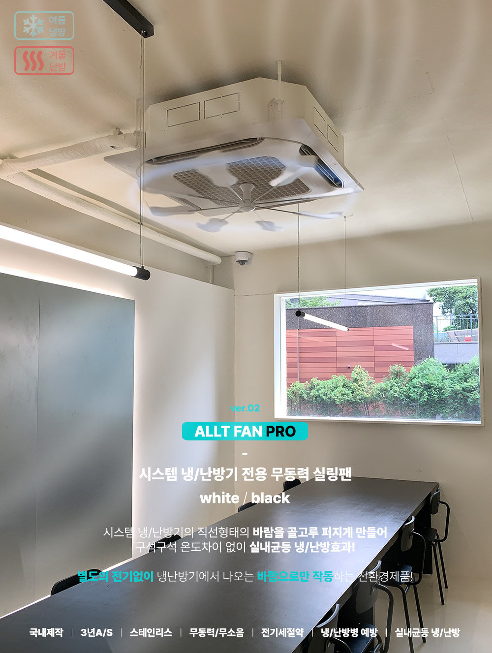 여름철 '냉풍'부터, 겨울철 '온풍'까지 안전하게 사용 할 수 있도록 #스테인리스 로 만든 국내 유일시스템 냉난방기 전용 실링팬!