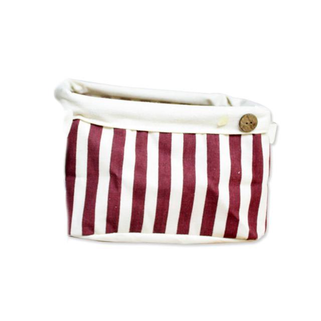 린넨 스트라이프 사각 바스켓 [레드]