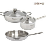 키친아트 스텐레스 인덕션 냄비 후라이팬세트 (퀸즈 통3중 냄비(편18+전24)+퀸 통5중 후28)