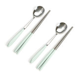 유광 수저세트 2개 (민트) 신혼부부 스텐 식당 가족 2인 젓가락 숟가락
