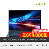 ACER 프레데터 헬리오스 네오 16S 슬림 AI PHN16S-71-99SN (U9-275HX/RTX5070/32GB/1TB/Win11Home)