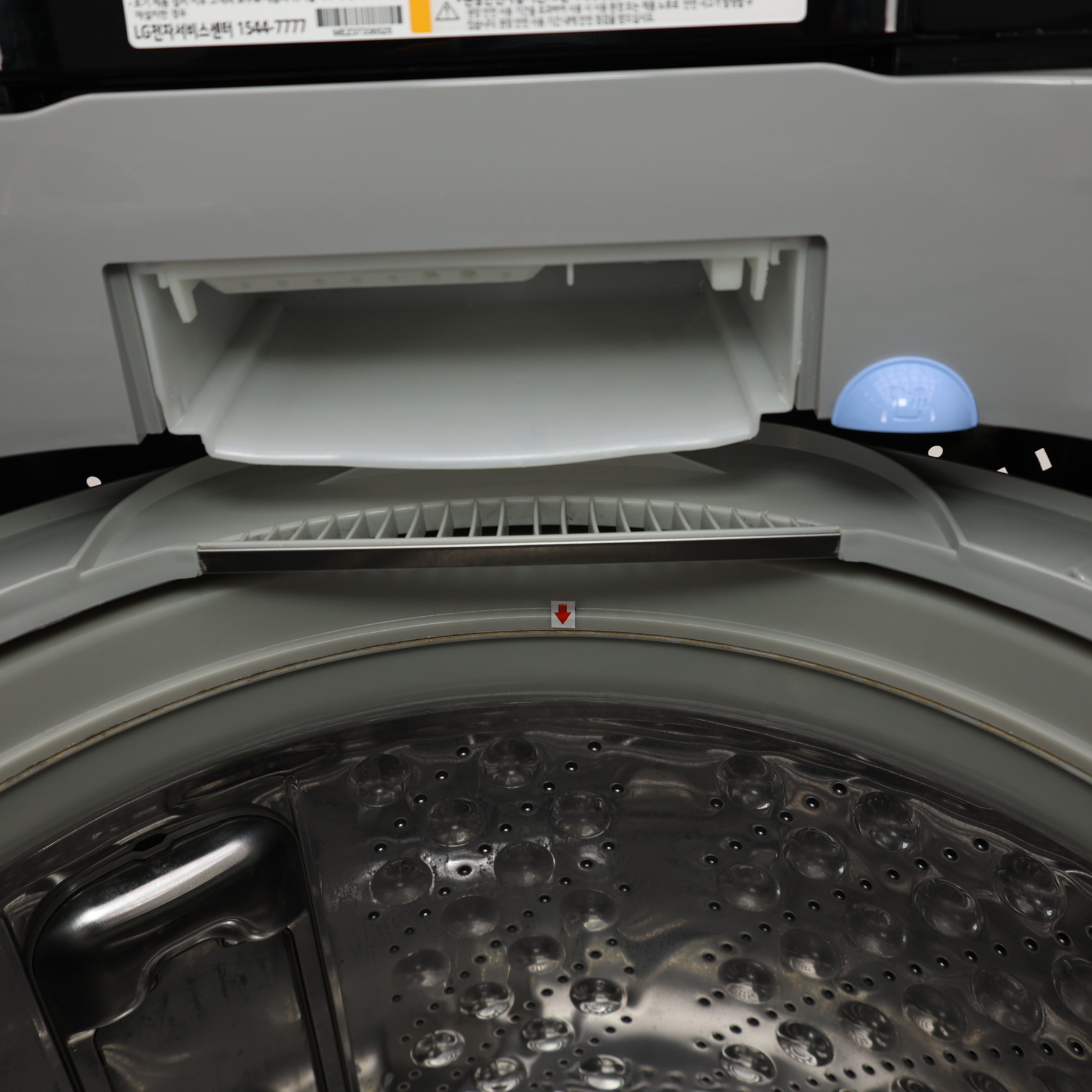 통 내부에는 사용 과정에서 발생한 세제때(잔여물) 흔적이 일부 남아 있습니다.