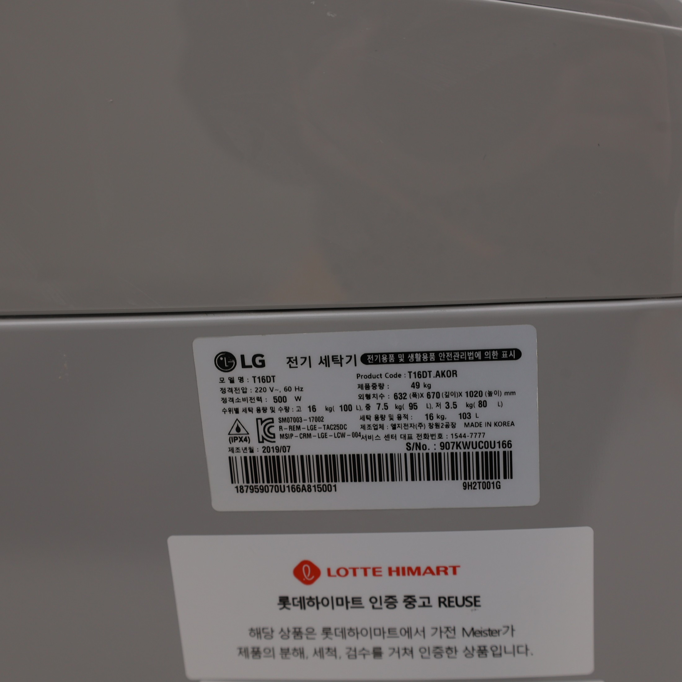 - 품목 일반세탁기 16KG이하