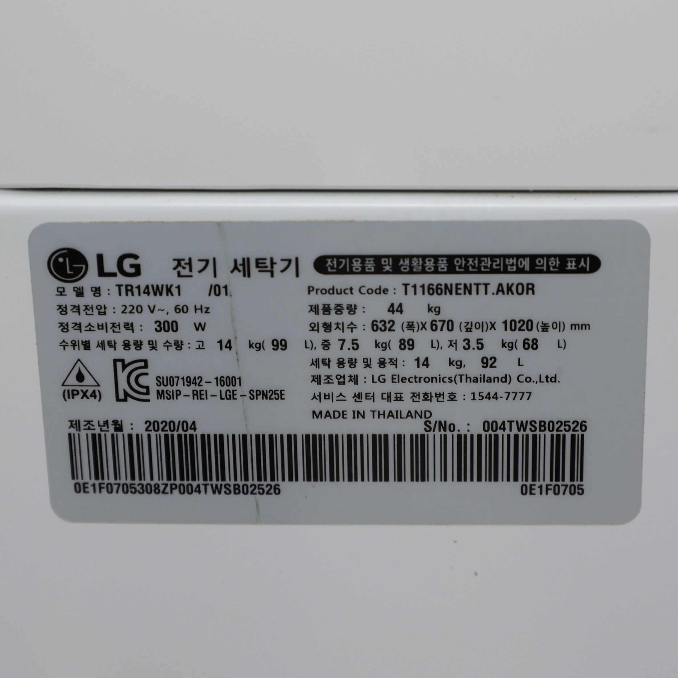 - 제조사 모델명 TR14WK1