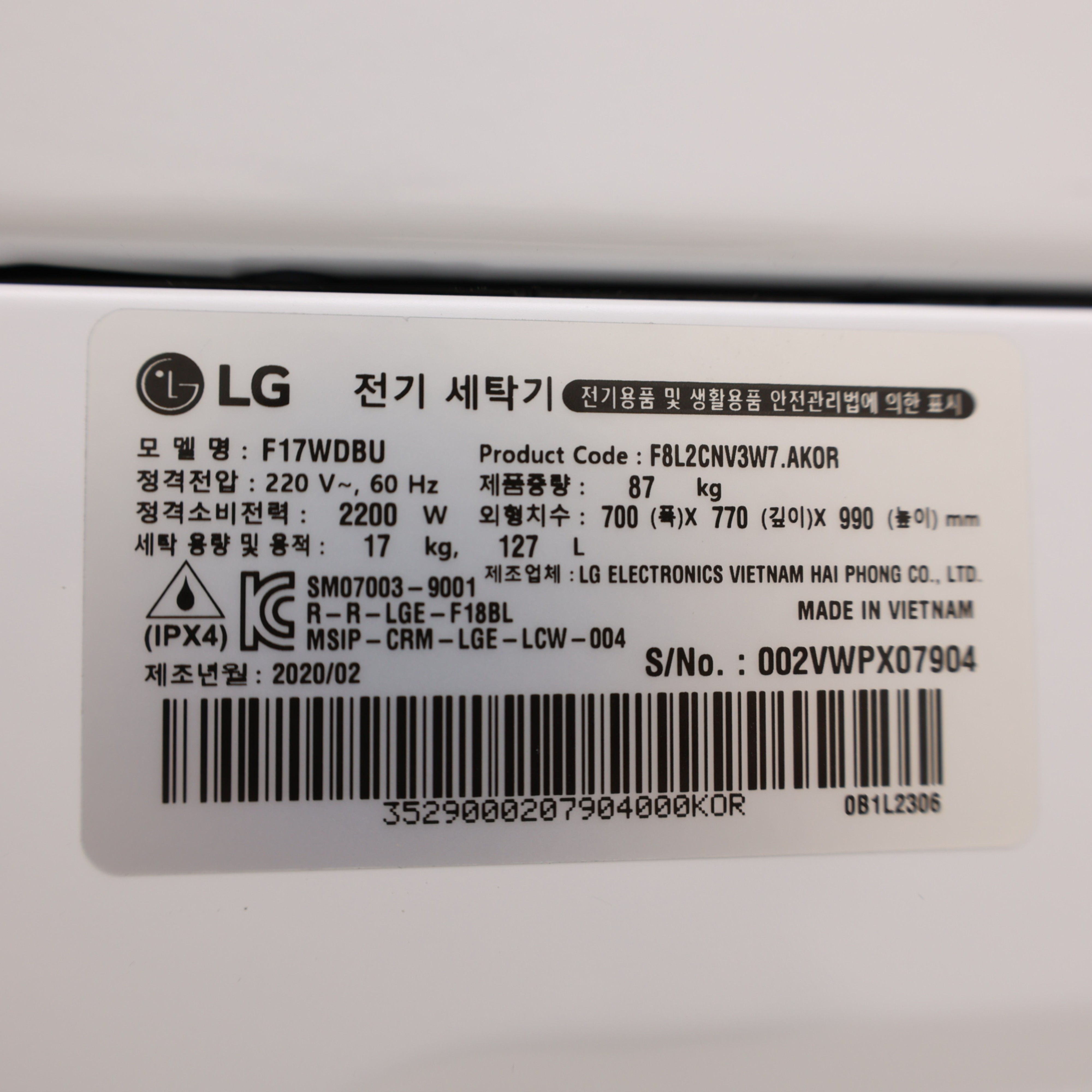 - Reuse 모델명 (R)WD20LG5N_00002