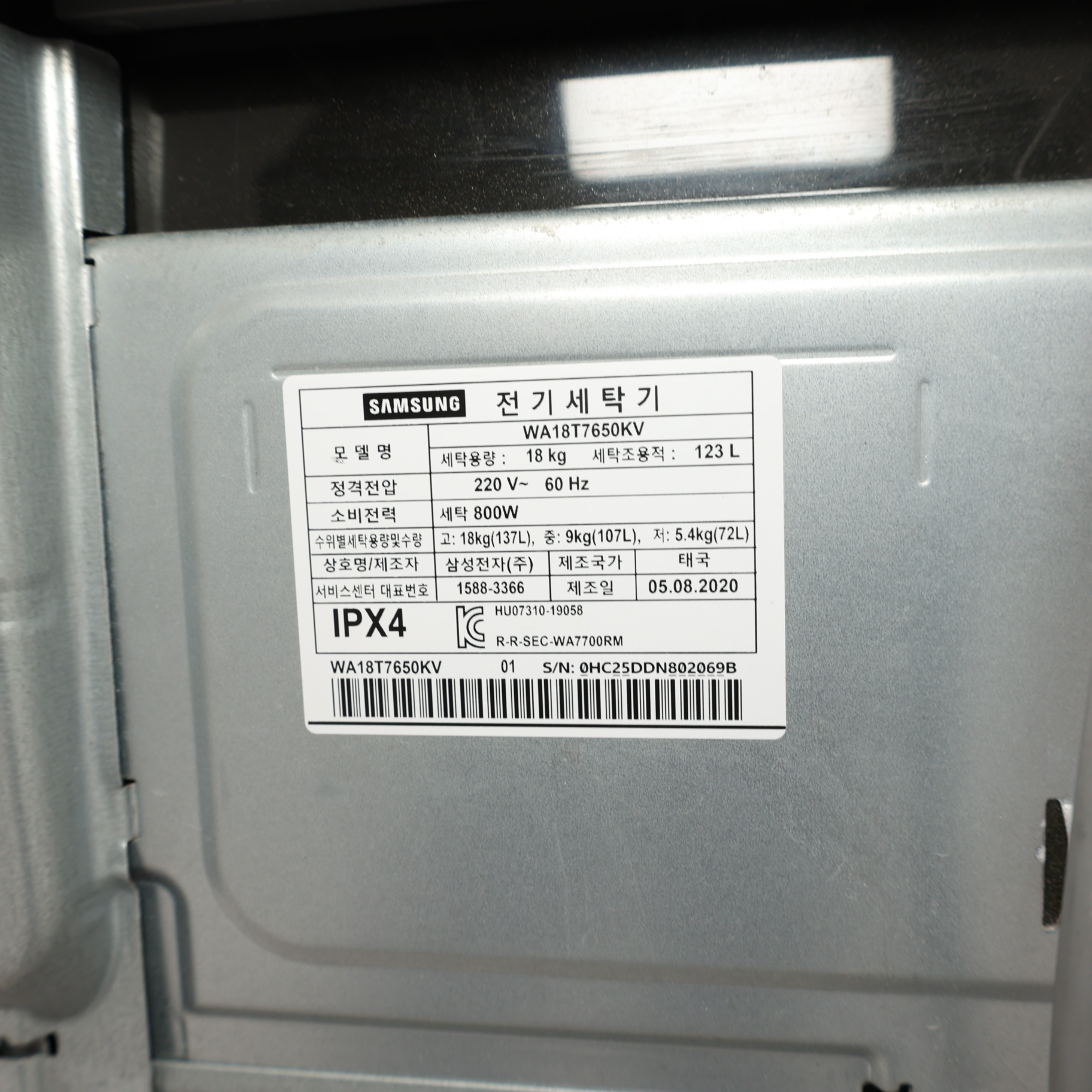 - 제조사 모델명 WA18T7650KV