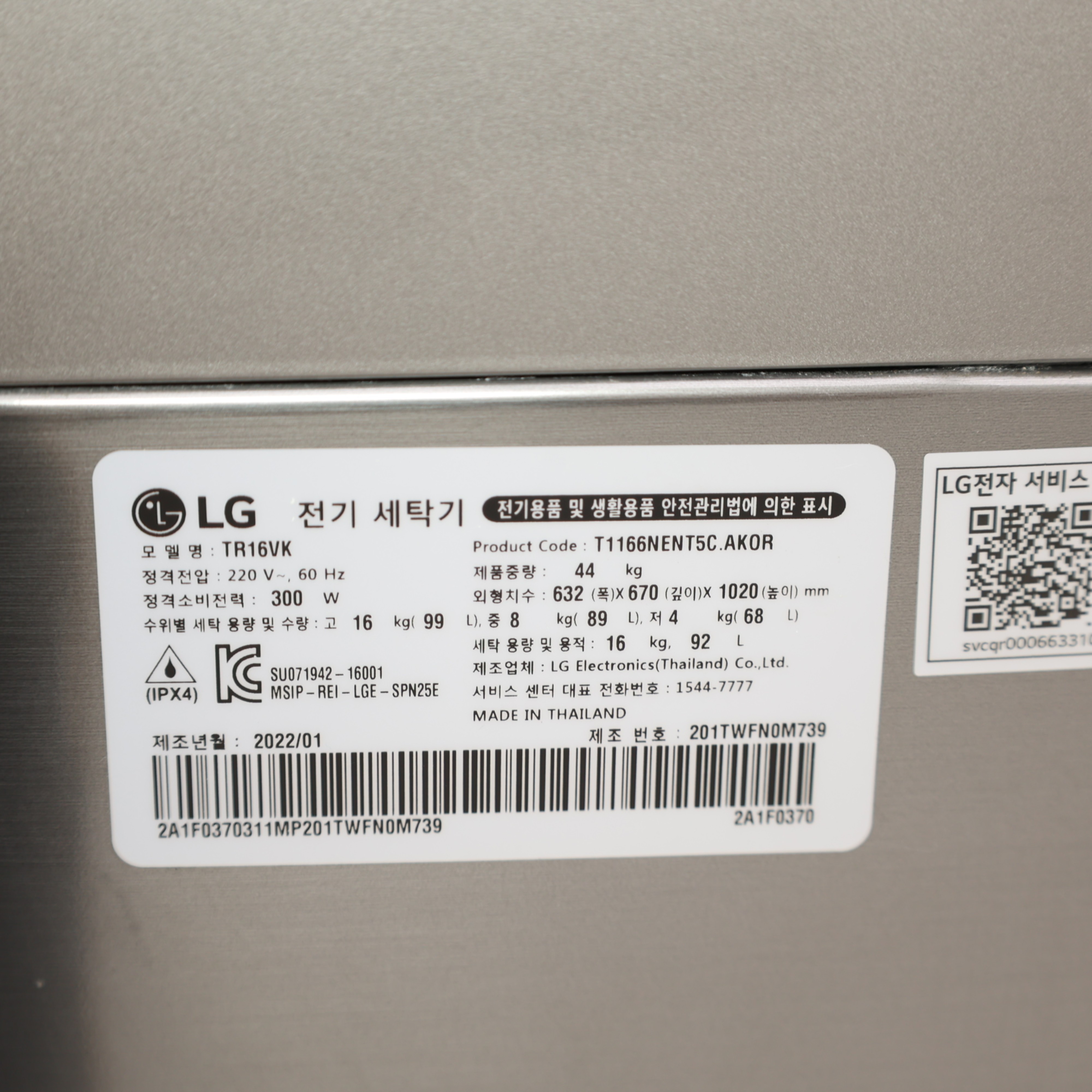- 품목 일반세탁기 16KG이하
