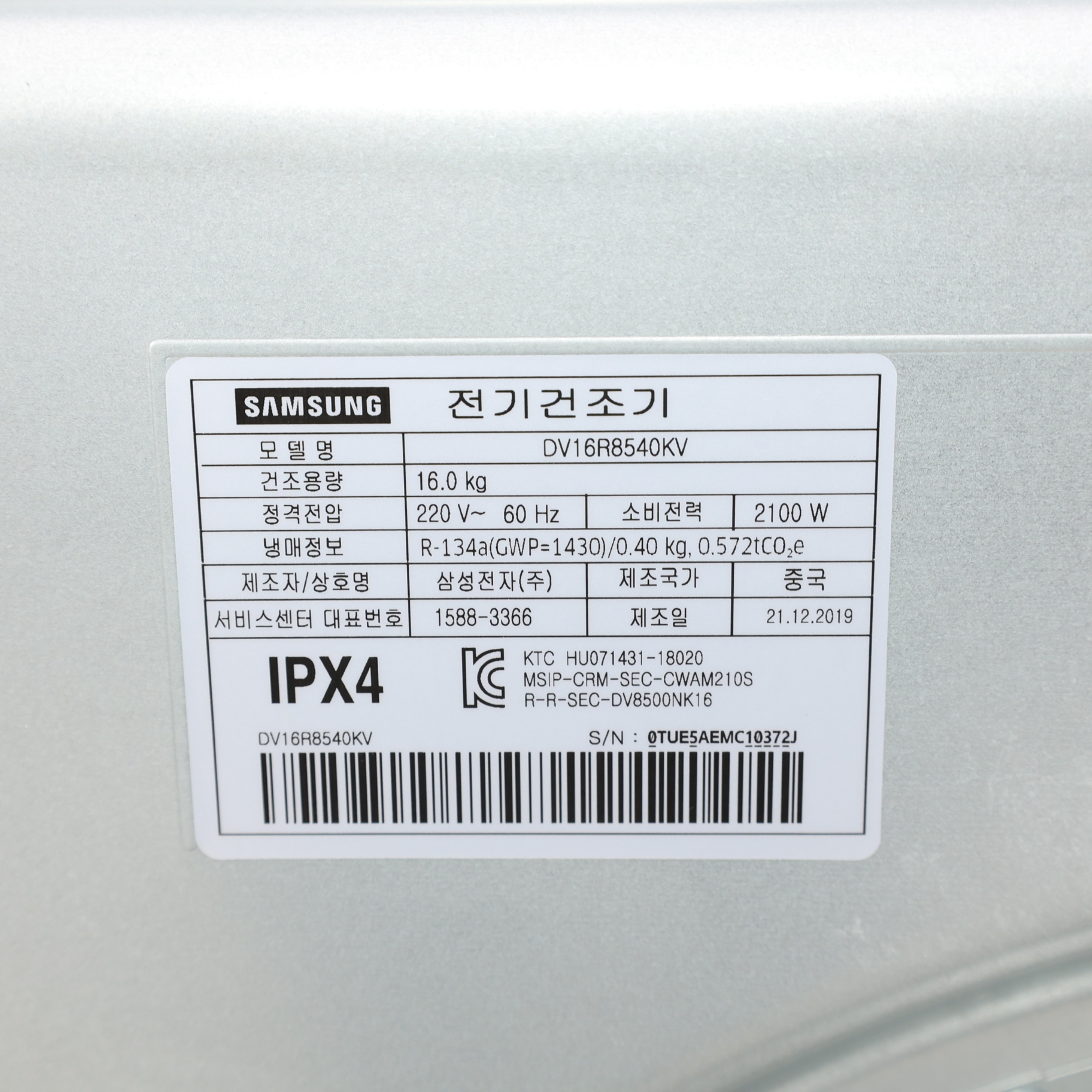 - 제조사 모델명 DV16R8540KV