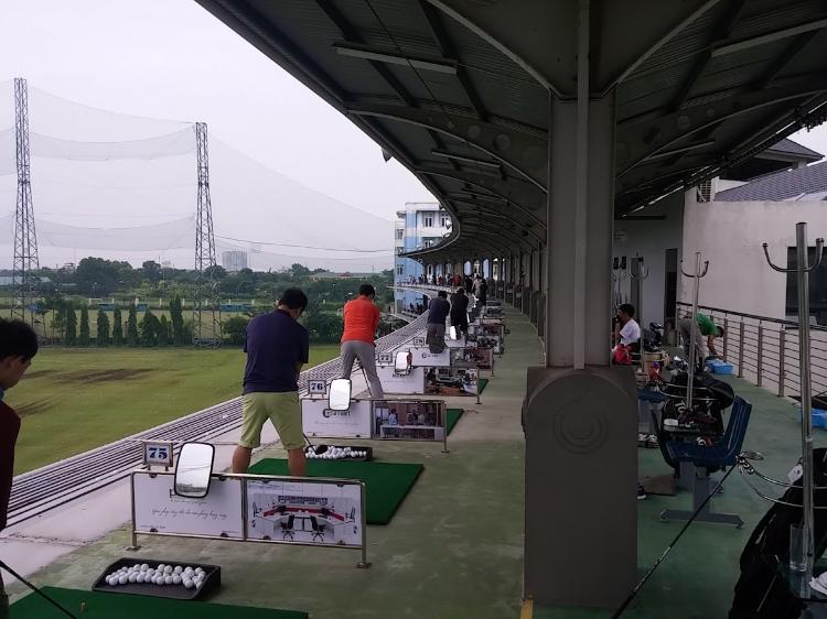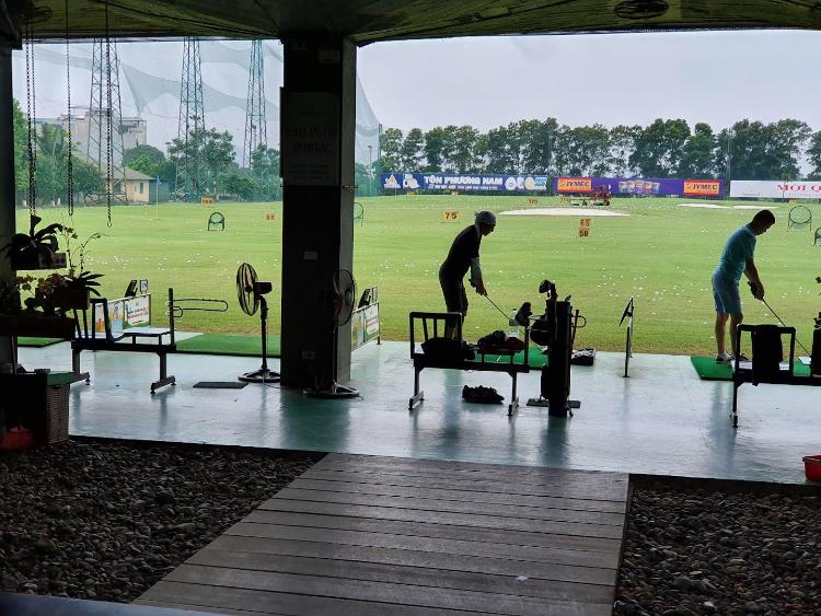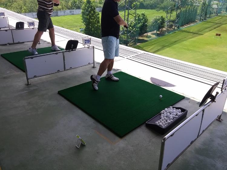 많은 분들이 시간을 투자하여 드라이빙 레인지에서 골프 연습을 하고 있습니다.